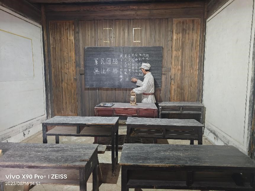 舊址陳列館內(nèi)的每一張圖片、每一段文字、每一件遺物無(wú)不記載著壯烈感人的故事,它不僅痛斥侵略者的殘忍和無(wú)情,更顯示出中華民族的勇敢無(wú)畏、一往無(wú)前。浙東行政公署舊址坐落在已經(jīng)有130多年歷史的古樸幽靜的院子里,為培養(yǎng)高素質(zhì)的黨政軍人才,浙東抗日軍政干校成立,并于1945年4月遷至橫坎頭村上新屋。舊址中現(xiàn)有序廳、校務(wù)處、總務(wù)處、軍事教室、文化教室、影視播放廳等,生動(dòng)地再現(xiàn)了該校學(xué)員當(dāng)年的學(xué)習(xí)、生活場(chǎng)景??缭桨倌甑膶W(xué)堂像一位精神矍鑠的老者,向后人們講述著四明兒女保家衛(wèi)國(guó)的紅色往事。黨員們追憶著先烈們?yōu)樾轮袊?guó)不屈奮斗的崢嶸歲月,在此重溫了那段波瀾壯闊的革命歷程。